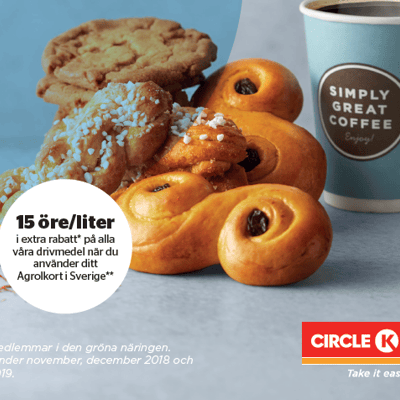 Stationskedjan Circle K (före detta Statoil) − en viktig samarbetspartner till Lantmännen Finans och Agrolkortet sedan 15 år tillbaka − väljer nu Lantmännen som leverantör av fikabröd till samtliga bemannade stationer i Sverige
