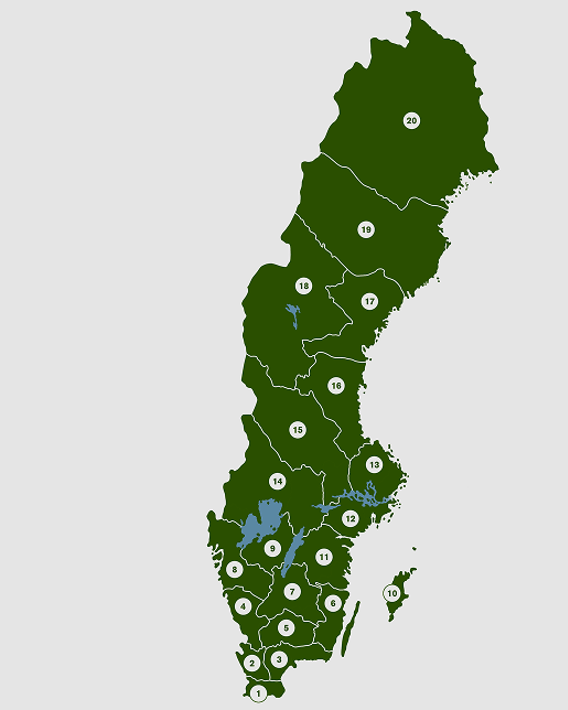 Lantmännen is divided into 20 districts, from south to north. Each district has a district board that is involved in issues that affect the entire Lantmännen Group and is responsible for membership issues in its area.